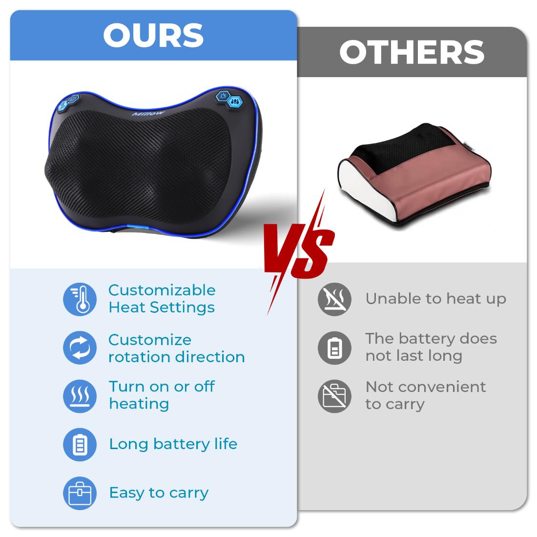- Adjustable Heat Settings: The only massage pillow offering multiple heat options — from gentle warmth to deep soothing heat for muscle relaxation.